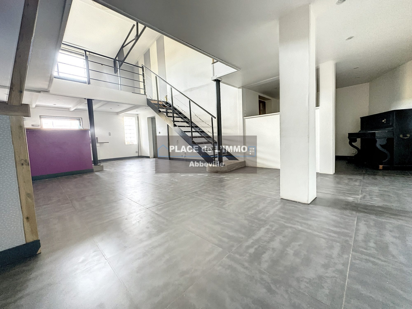 RARE SU RLE MARCHE !!!!!!!!!!! L'agence place de L'IMMO a le plaisir de vous faire découvrir sur la commune d'Abbeville, (proche Baie de Somme, autoroute A16 et A28), un LOFT d'une superficie de 150m² habitables et d'un garage de 55m², comprenant : Un sas d'entrée, desservant une vaste pièce de vie salle salon ouverte sur une cuisine équipée et aménagée, un espace bureau, une laverie, et les sanitaires indépendants. A l'étage : Une chambre, une salle d'eau avec les sanitaires, un dressing, et un palier avec escalier donnant accès à une deuxième chambre. Le bien est évolutif et peut accueillir encore deux chambres supplémentaires, (solivage, plancher OSB, et double vitrage déjà en place) les extérieurs se composent d'un espace cour (25 m²) et d'un garage d'une superficie de 55 m² au sol.